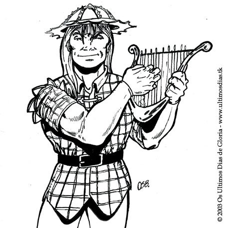 da companhia, o pequeno orelhas pontudas, um exímio harpista
